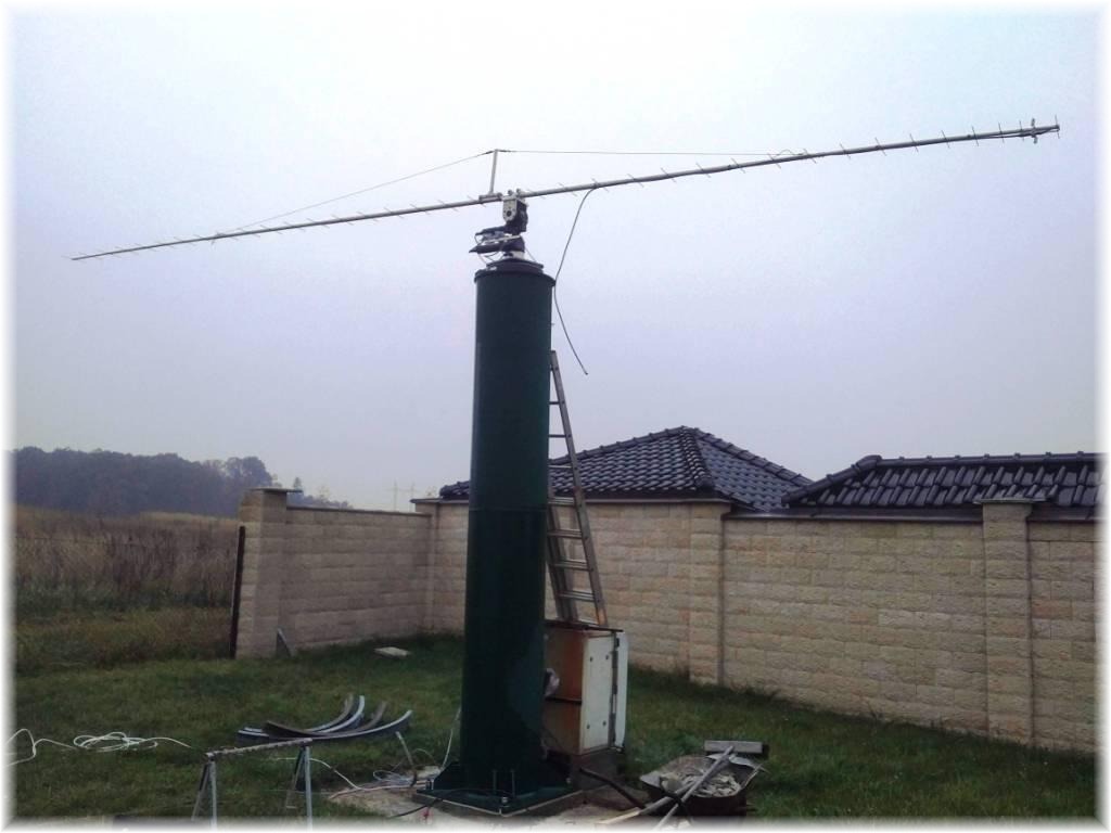 Temporary used 38el. M2 Yagi installed on mast for new dish. |