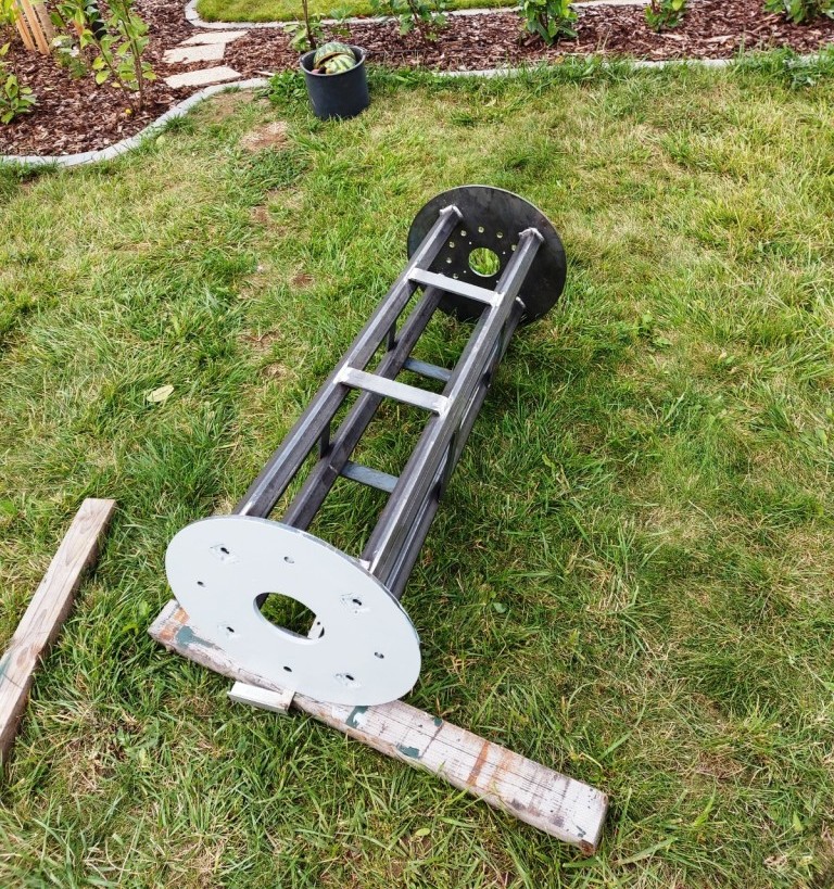 Today I was working on the details of the assembly. To make the gearbox work lightly for elevation, a parabola had to be added to the balance beam. The final step will be the final installation of concrete blocks weighing 2x 50kg.