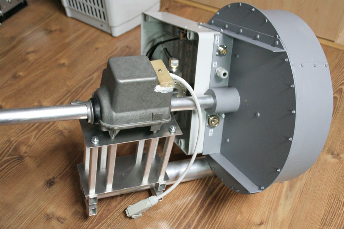 Back side of feed with N connector. You can see also 4 small holes where will be screwed special part for connection to rotator and giving possibility turn between V to H polarization. |