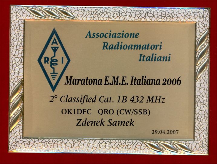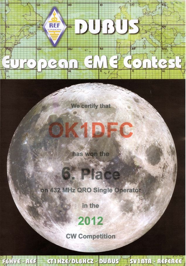 Issued DXCC on 432 MHz: DL9KR, HB9Q, PA3CSG, K2UYH, DK3WG, OK1KIR, DF3RU, DL7APV, OK1DFC, G4RGK